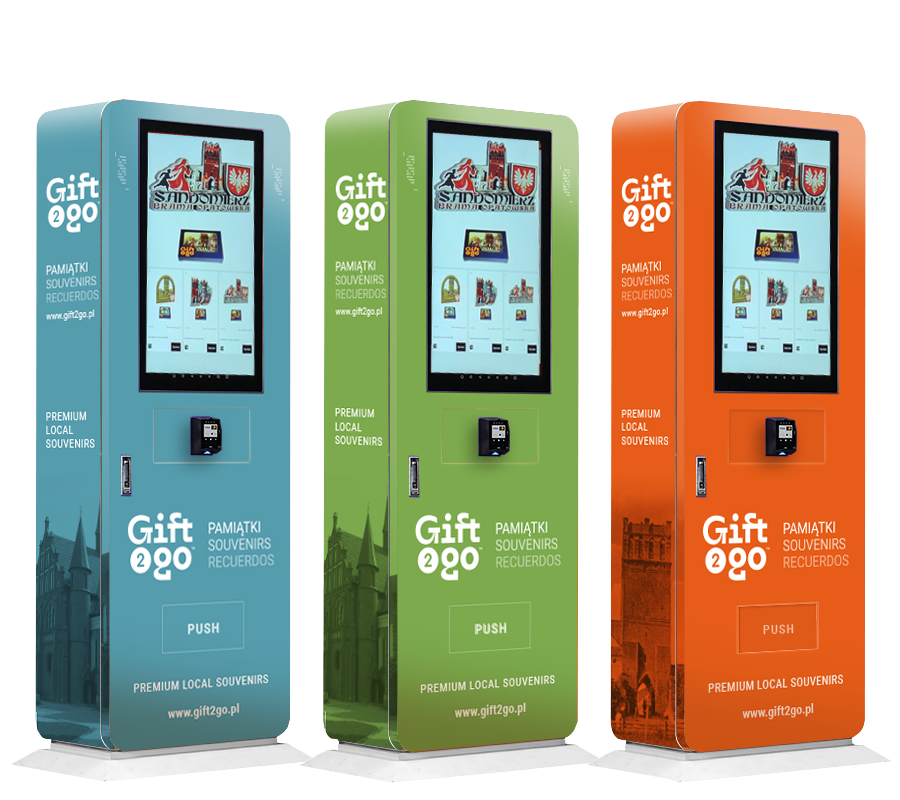 Gift2Go to nowoczesne, multimedialne urządzenie vendingowe stworzone z myślą o turystach i właścicielach atrakcji turystycznych. To techniczna nowość na rynku pamiątek — łączy w sobie sprzedaż, reklamę i informacje w jednym eleganckim, solidnym urządzeniu.